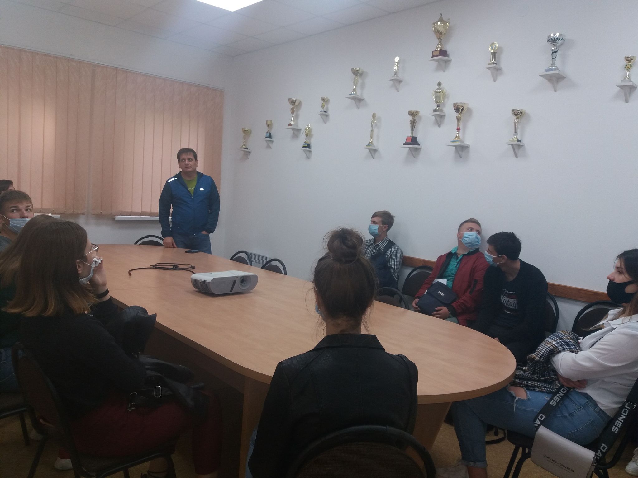 Андрій Андрійович детально розповів студентам-географам про основні напрями роботи закладу: туристсько-спортивну діяльність, краєзнавчі дослідження, національно-патріотичне виховання молоді. Була розкрита організаційно-територіальна структура центру, висвітлені методичні аспекти роботи гуртків зі скелелазіння, велосипедного, спортивного та пішохідного туризму, спортивного орієнтування, географічного краєзнавства, окреслені перспективи розвитку закладу, його кадровий потенціал, вимоги до працівників, оглянуто експозицію краєзнавчого музею, відкриття якого заплановано до кінця року.