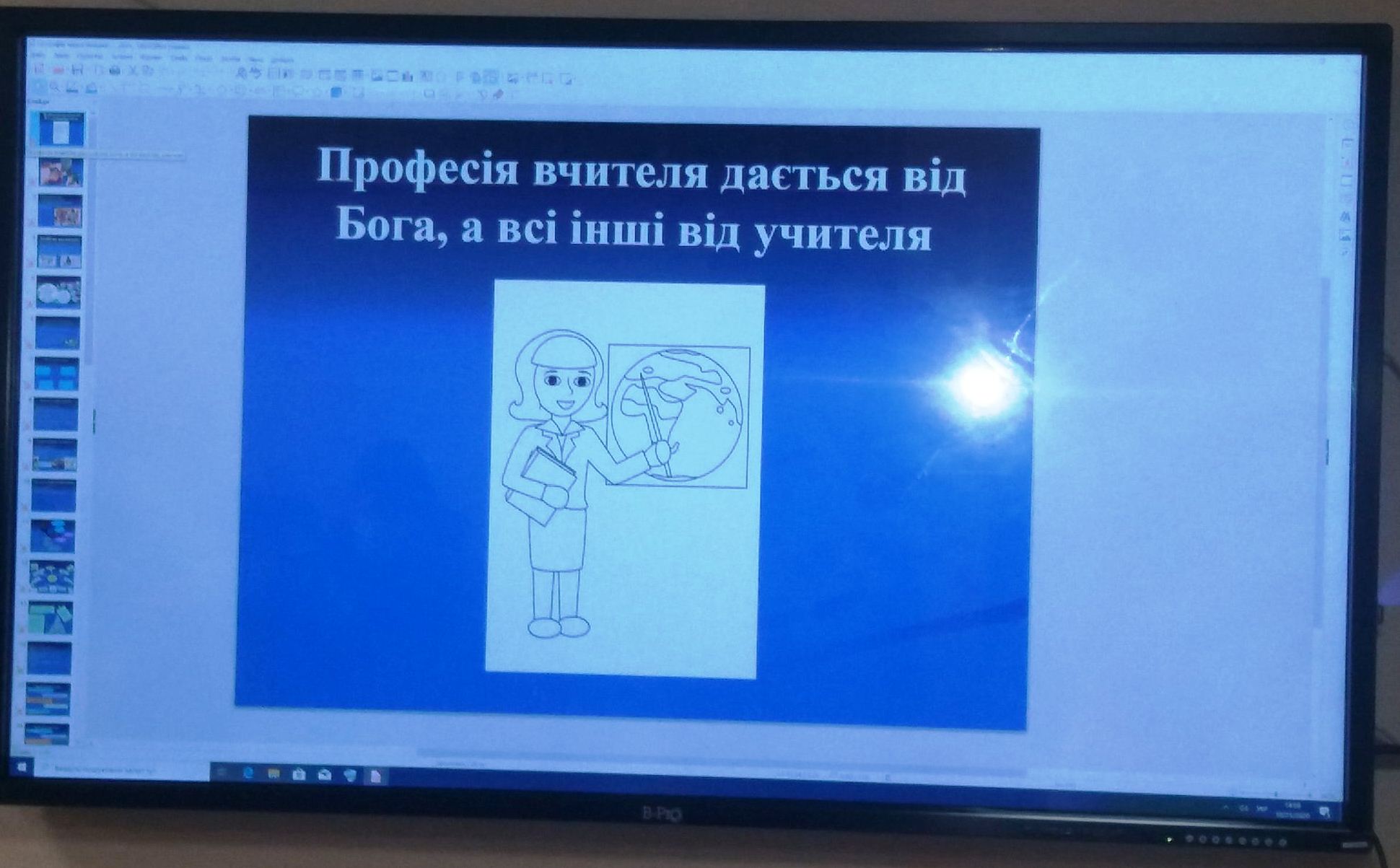 Лекцію було проведено в рамках вивчення дисципліни «Методика навчання географії» та підготовки до проведення виробничої (педагогічної) практики у школі. Головною метою було ознайомлення студентів з проблемами та перспективами сучасної географічної освіти, розкриття нових підходів у навчанні географії та аналіз нормативного поля шкільної географічної освіти.
