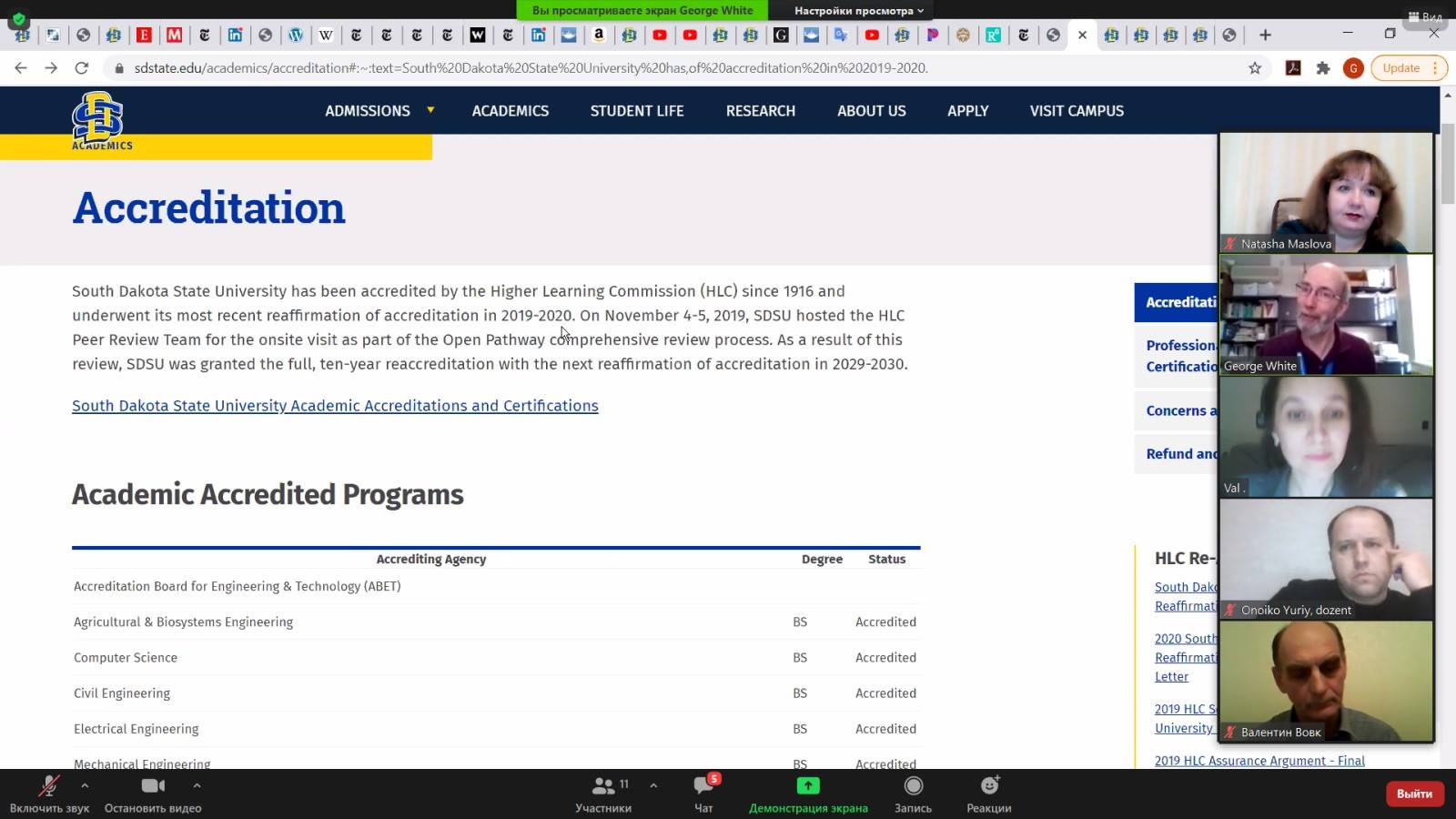 19 листопада 2020 року на кафедрі географії та геоекології ЦДПУ ім. В. Винниченка відбулася неординарна подія: спільно з кафедрою географії та геопросторових наук державного університету штату Південна Дакота (South Dakota State University, SDSU, Brookings, USA) проведений семінар на тему «Освітні програми з географії: досвід розробки та впровадження у закладах вищої освіти США та України».