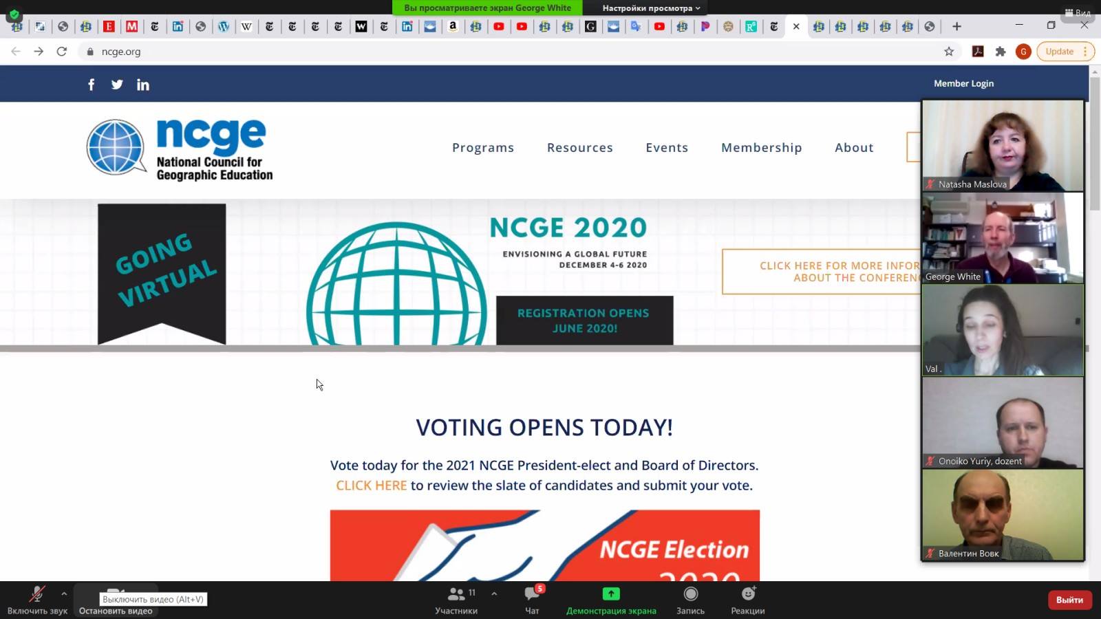З 5 вересня 2020 року для студентів та викладачів кафедри географії і геоекології Центральноукраїнського державного педагогічного університету імені Володимира Винниченка розпочався цикл лекцій-дискурсів американського професора Джорджа Уайта з питань електоральної географії, які відбуваються дистанційно з використанням платформи Zoom.