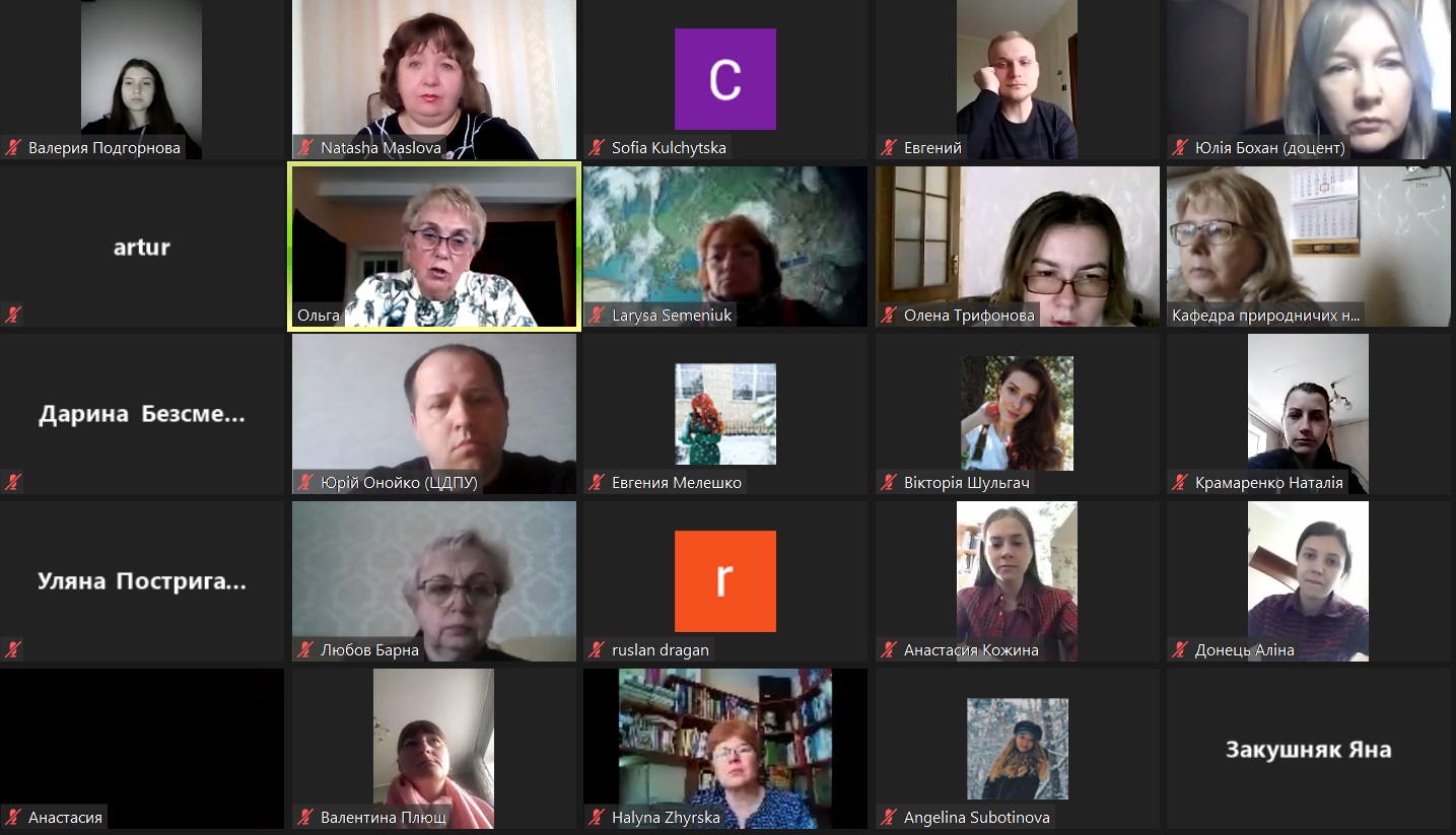07 квітня студенти першого (бакалаврського) і другого (магістерського) рівнів вищої освіти спеціальності 014 Середня освіта (Географія), які навчаються за освітньо-професійними програмами «Середня освіта (Географія) та краєзнавчо-туристична робота», «Середня освіта (Географія та Історія)», «Середня освіта (Географія та Мова і література (англійська))» та викладачі кафедри географії і геоекології Центральноукраїнського державного педагогічного університету імені Володимира Винниченка відвідали лекцію в онлайн-форматі з теми «Навчання предметів природничої освітньоі галузі на засадах компетентнісного підходу», яку провела стейкхолдер Ярошенко Ольга Григорівна, доктор педагогічних наук, професор, академік Національної академії педагогічних наук (НАПН) України, головний науковий співробітник Відділу інтеграції вищої освіти і науки Інституту вищої освіти НАПН України.