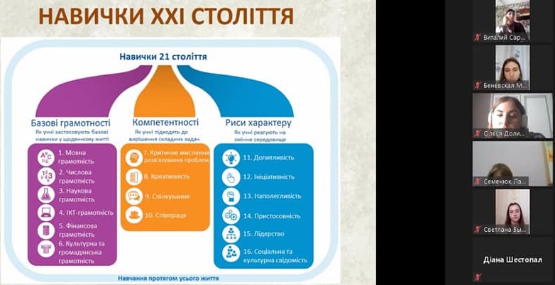 Під час спілкування зі студентами та викладачами Ольга Григорівна в загальних рисах розкрила концептуальні основи компетентісного підходу як освітньої парадигми, суть поняття «компетентність», проаналізувала набір компетентностей, формування яких передбачено навчальними програмами дисциплін, що складають освітню галузь «Природознавство» в діючому Державному стандарті базової і повної освіти та «Природничої освітньої галузі» в новому Державному стандарті базової середньої освіти, затвердженому у 2020 р.