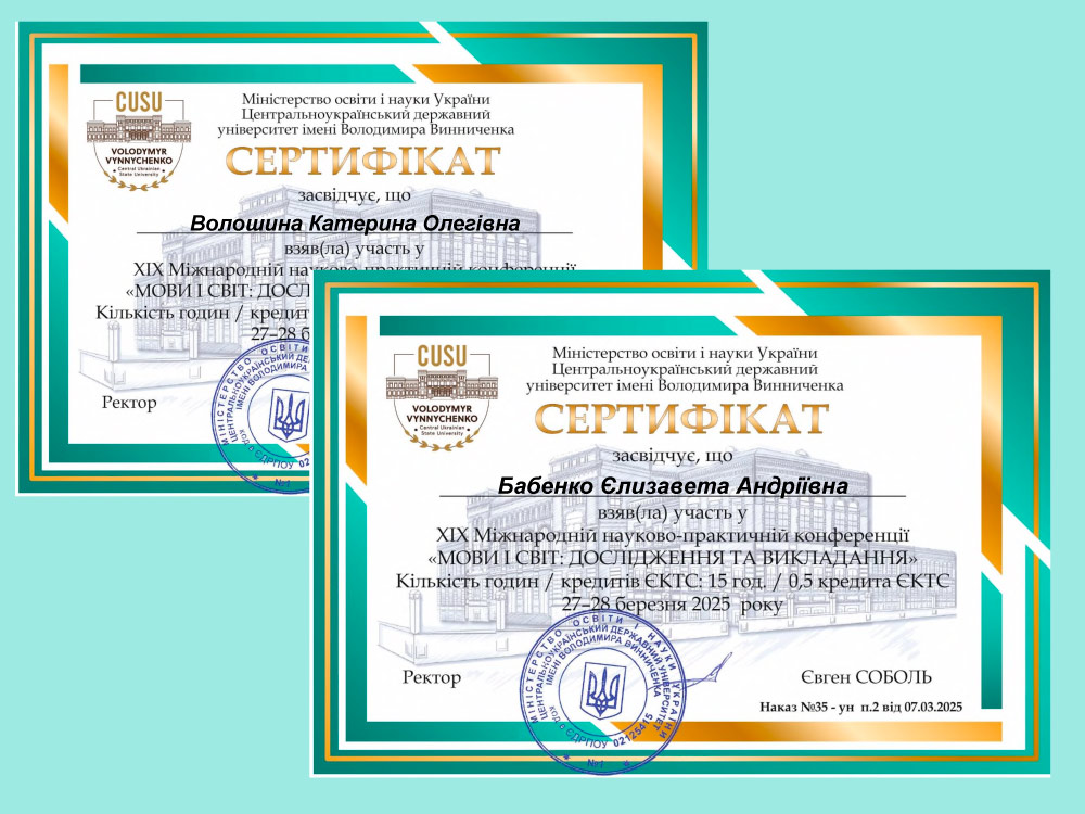 27-28 березня 2025 року на факультеті української філології, іноземних мов та соціальних комунікацій відбулася ХIX Міжнародна науково-практична конференція «Мови і світ: дослідження та викладання».