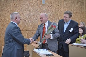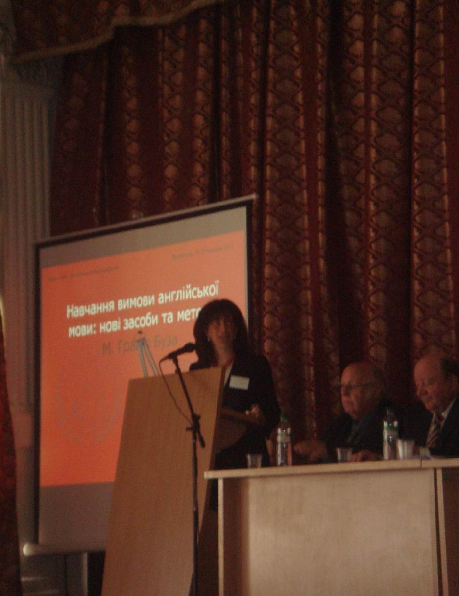 У подальшому особлива увага учасників була прикута до президії конференції, яка зібрала чимало провідних фахівців з усієї України. Так своїми виступами з трибуни відзначилися сам ювіляр, який говорив про мовну картину світу нації та проблеми міжкультурної комунікації, гостя з Німеччини, професор Майнцького університету Сабіна Маттер-Зайбель із доповіддю про труднощі перекладу Біблії, доктор філологічних наук, професор кафедри зарубіжної літератури Інститут філології Київського національного університету імені Тараса Шевченка Іван Мегела, що поділився з аудиторією власною інтерпретацією повісті Германа Гессе «Сіддхартха». Про історію новітньої австрійської літератури з трибуни промовця говорив доктор Якуб Форст-Баталья, посланник Посольства Республіки Австрія в Україні і директор Австрійського культурного форуму. За ним виступали «шотландський німець», професор Фленсбурзького університету Брайян Керлесс, який зараз перебуває в стінах нашого університету за програмою Йоганна Ґотфріда Ґердера, доктор філологічних наук, професор Київського національного лінгвістичного університету Світлана Павлівна Денисова, яка розповіла присутнім про сучасний стан та перспективи розвитку перекладознавства в Україні. Ґрунтовним виступом на передову лінгвістичну тематику відзначився доктор філологічних наук, професор кафедри теорії і практики перекладу Чернівецького національного університету імені Юрія Федьковича Василь Бялик, багато і цікаво з риторської кафедри говорили доктор філологічних наук, професор кафедри іноземних мов Національного педагогічного університету ім. М. П. Драгоманова Світлана Іваненко, доктор філологічних наук, професор кафедри теорії та практики перекладу з німецької мови Чорноморського державного університету імені Петра Могили Анатолій Науменко і Леонід Черноватий, доктор педагогічних наук, професор кафедри теорії та практики перекладу англійської мови Харківського національного університету ім. В. Н. Каразіна, котрий прочитав доповідь, присвячену стратегіям застосування перекладацького скоропису при викладанні усного послідовного перекладу.