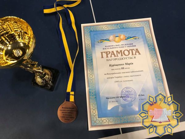 В кінці зими, а точніше 25 - 28 лютого у місті Чернігів проходили Всеукраїнські змагання найсильніших юніорів України з тенісу настільного. У змаганнях брала участь студентка факультету фізичного виховання, групи СП20Б, майстер спорту України Куріщенко Марія. Ці змагання були одним з етапів відбору до юніорської збірної України, яка буде брати участь у чемпіонаті Європи у червні 2021 року.