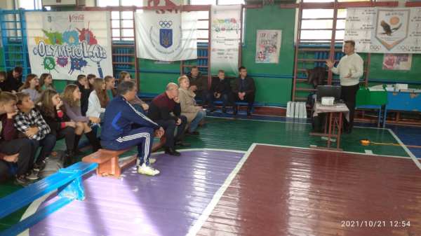 Головний фахівець відділення НОК України у Кіровоградській області Аношкін М.І. розповів про сучасний стан олімпійського руху на Кіровоградщині і про активну участь Помічнянської ЗОШ І-ІІІ ступенів №3 у системі шкіл олімпійської освіти.