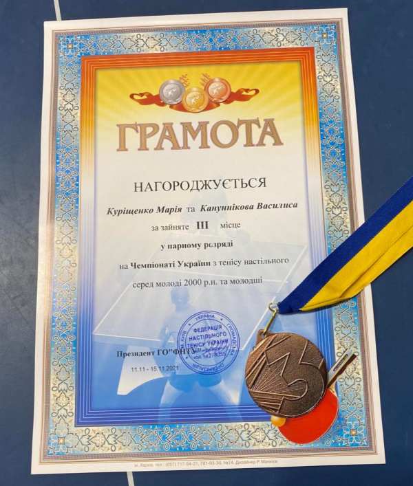 12-15 листопада 2021 року в Чернігові відбувся Чемпіонат України серед молоді з настільного тенісу. В змаганнях брала участь студентка другого курсу факультету фізичного виховання, майстер спорту України Марія Куріщенко, яка виборола дві нагороди – срібло в командному заліку та бронзу у жіночому парному розряді.