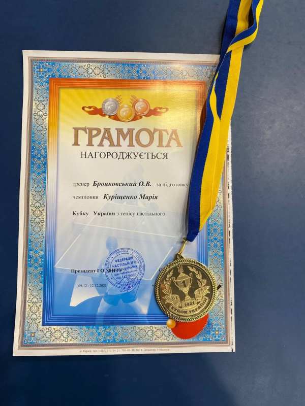9-12 грудня 2021 року в місті Чернігів відбувся розіграш Кубку України з настільного тенісу. Змагання проходили в командному та особистому заліку і є заключними в річному спортивному циклі. У підсумку змагань студенти факультету фізичного виховання здобули дві золоті нагороди — студент групи СП21М, майстер спорту України Всеволод Брояковський став переможцем у командному заліку, а студентка групи СП20Б, майстер спорту України Марія Куріщенко здобула золоту нагороду в особистих змаганнях.