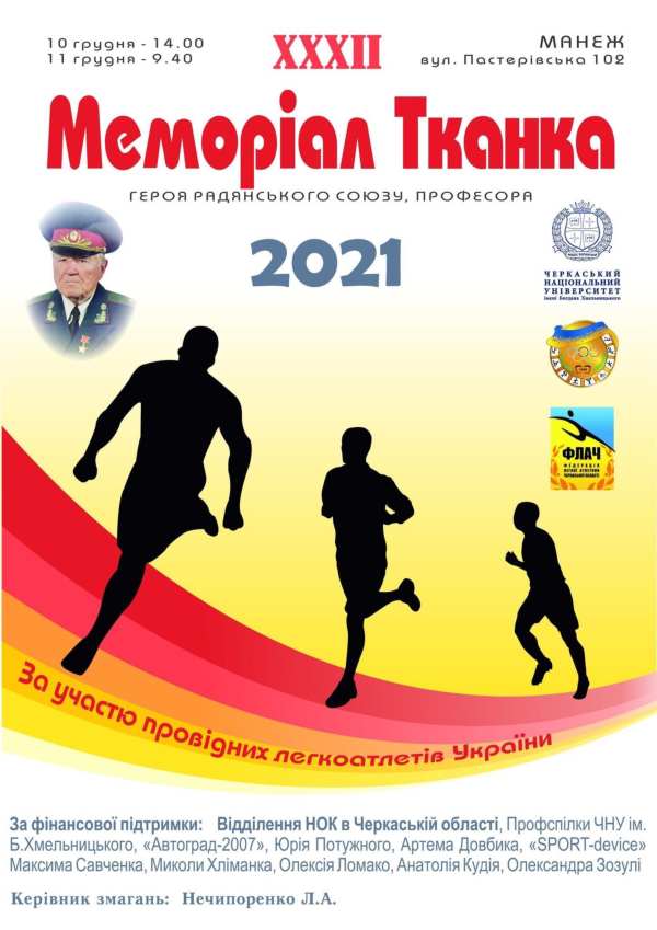 З 10 по 11 грудня 2021 року збірна команда легкоатлетів Центральноукраїнського державного педагогічного університету ім. В. Винниченка виступила на Всеукраїнських змаганнях з легкої атлетики «Меморіал Героя Радянського Союзу, професора О.В. Тканка», колишнього ректора Черкаського національного університету імені Богдана Хмельницького.
