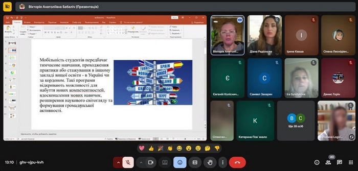 Із надзвичайно цікавою та змістовною доповіддю виступила кандидат педагогічних наук, доцент, завідувач кафедри теорії та методики спорту Центральноукраїнського державного університету імені Володимира Винниченка Бабаліч В.А., яка поділилася власним досвідом і практичними порадами щодо участі в програмах академічної мобільності, розвитку професійних навичок і формування глобального мислення у студентів.
