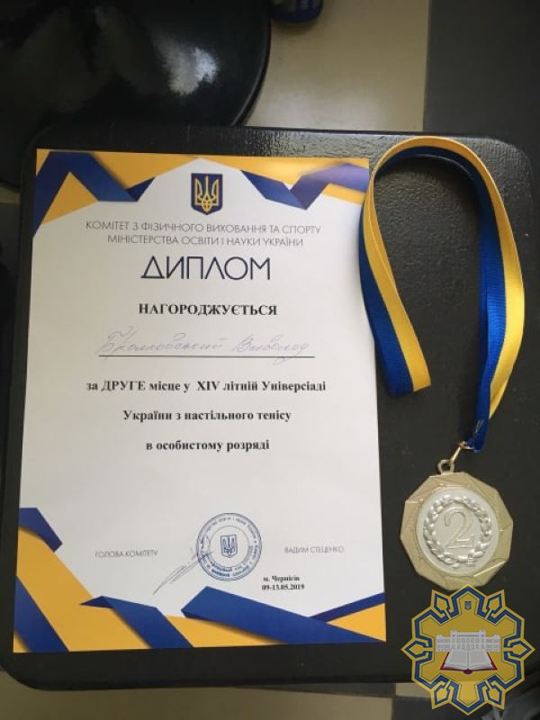 З 10 по 14 травня 2019 року в м. Чернігові проходили змагання з тенісу настільного за програмою ХІV літньої Універсіади України. У змаганнях брав участь студент факультету фізичного виховання групи СП 17Б, майстер спорту України Брояковський Всеволод разом з тренером - старшим викладачем кафедри теорії та методики олімпійського і професійного спорту Брояковським Олександром Вікторовичем. У змаганнях брали участь 38 спортсменів, з них 16 майстрів спорту України. І та ІІ місце в особистому заліку давали можливість потрапити до складу збірної команди України, яка в рамках Всесвітньої Універсіади вирушить до міста Неаполь (Італія) 04 липня 2019 року.