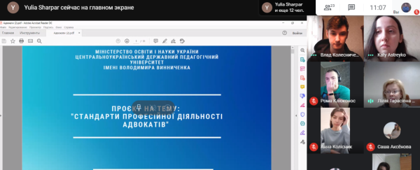 У рамках тижня права на факультеті історії та права ЦДПУ здобувачі магістерського рівня вищої освіти за спеціальністю 081 Право презентували результати своєї проектної діяльності з проблеми вітчизняних та зарубіжних стандартів правничих професій.