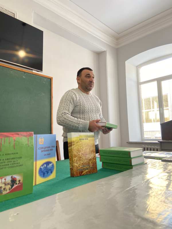 Також на заході була представлена монографія О.Л. Ковалькова «СРСР в Афганістані (1978-1991 рр.): остання спроба експорту соціалізму». Олександр Леонідович розповів студентам про специфіку дослідницької роботи, зупинився на головних механізмах «експорту соціалізму» до Афганістану та військових аспектах афганської кризи. Слухачів особливо зацікавила інформація про підготовку афганських студентів в навчальних закладах тодішнього м. Кіровограда. Відповідаючи на запитання, О.Л. Ковальков висловив своє бачення сучасної політичної ситуації в Афганістані після повернення до влади руху «Талібан» та наголосив, що сучасні події в Афганістані вже стали складовою курсу «Новітня історія Азії та Африки».