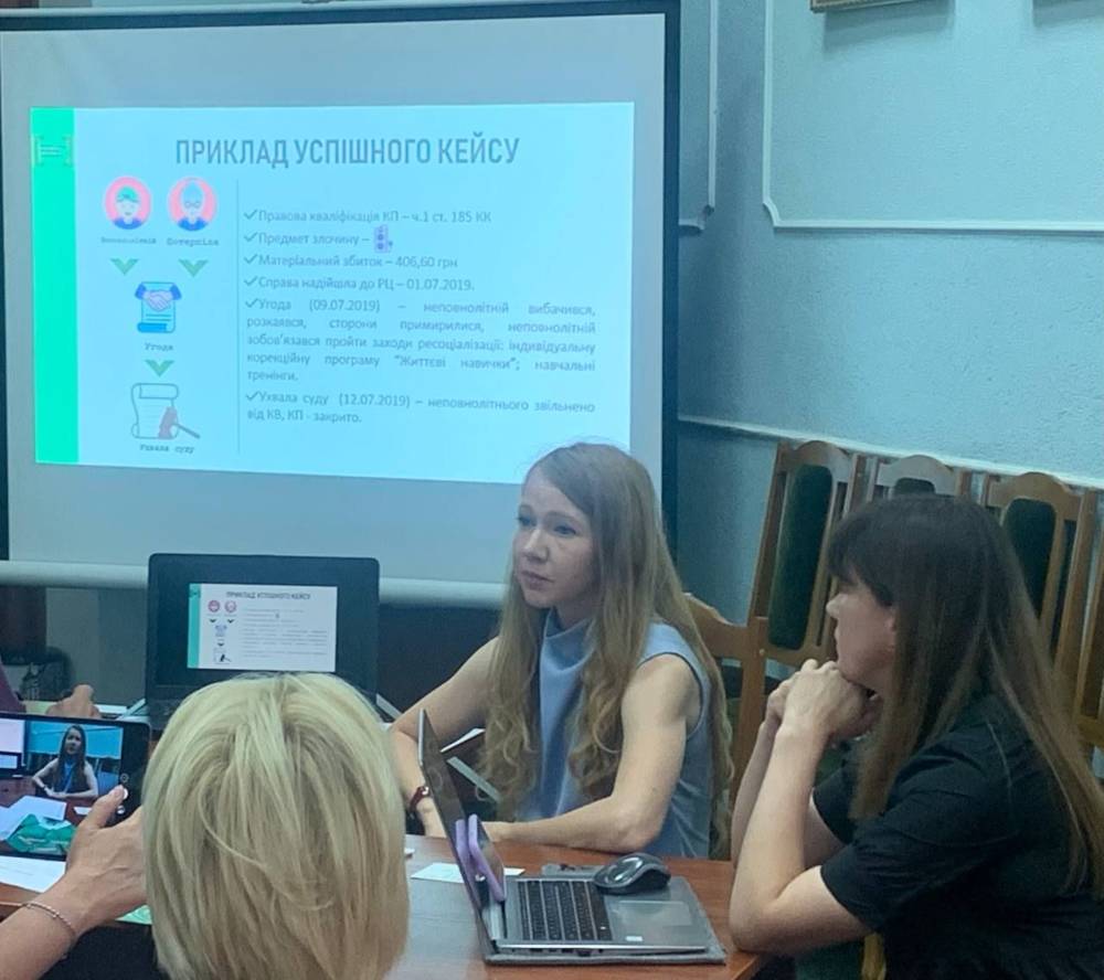 Спікерами заходу були заступник директора Регіонального центру з надання БВПД у Кіровоградській області О.Г. Шишкарьова, адвокат Л.С. Язан та працівниця відділу комунікацій Регіонального центру з надання БВПД у Кіровоградській та Миколаївській областях О.М. Роміцина, які висвітлили особливості відновного правосуддя, підстави та умови його застосування, а також окреслили переваги та проблемні аспекти такої практики.