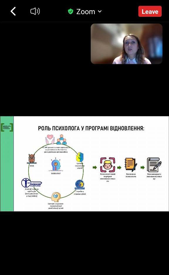 Онлайн-зустріч «Пілотний проєкт з відновного правосуддя для неповнолітніх: робота психолога з учасниками»