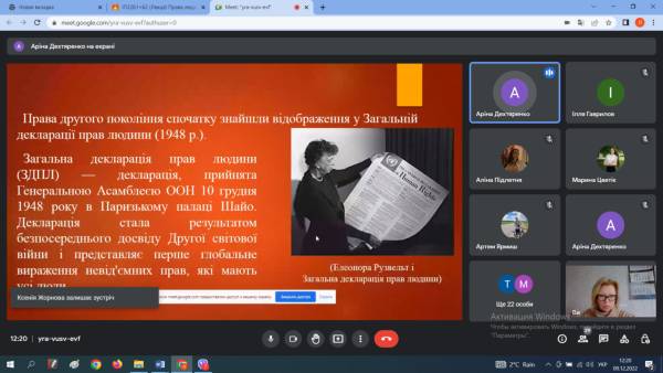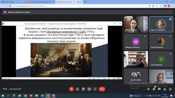 Бакалаври, які навчаються за спеціальністю 014.03 Середня освіта (Історія), спеціалізація Правознавство, у межах дисципліни «Конституційне право України», інтегруючи знання з всесвітньої історії та історії України щодо становлення інституту прав людини, а також знання міжнародного та вітчизняного законодавства, виокремили й дали ґрунтовну характеристику поколінь прав людини.