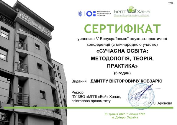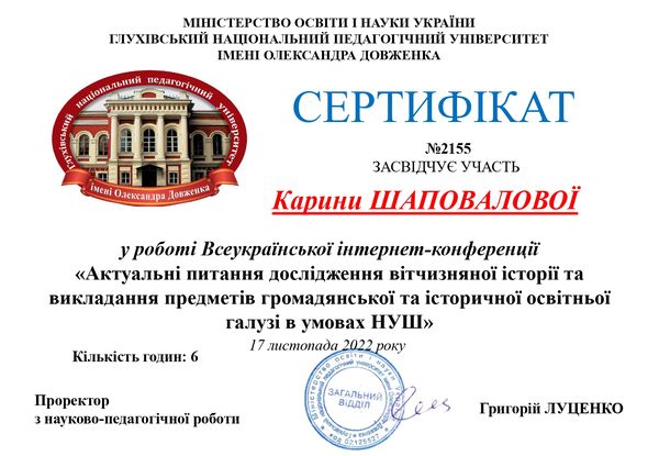 Суттєвими є наукові результати бакалаврів та магістрів, які здобувають вищу освіту за спеціальністю «014.03 Середня освіта (Історія)», спеціалізації «Правознавство» та «Географія». Віталій Пахолівецький репрезентував свою доповідь на міжнародній науково-практичній конференції молодих учених та студентів «Юридична осінь 2022» (Харків), Дмитро Кобзар – на міжнародній конференції «Правові засади діяльності правоохоронних органів» (Харків). Тези Богдани Підлипної, Єлизавети Миценко, Віталія Пахолівецького та Сергія Юрченко опубліковані у збірнику матеріалів міжнародної науково-практичної конференції «Духовно-інтелектуальне виховання і навчання в ХХІ столітті» (Харків). У всеукраїнських конференціях з міжнародною участю «Сучасна освіта: методологія, теорія, практика» (Дніпро) і «Актуальні питання дослідження вітчизняної історії та викладання предметів громадянської та історичної освітньої галузі в умовах НУШ» (Глухів) взяли участь Дмитро Кобзар, Ольга Титаренко, Карина Шаповалова.
