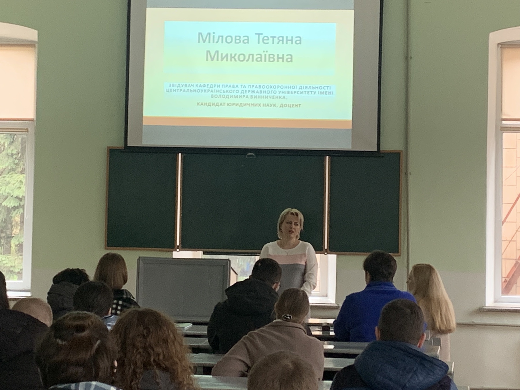 З вітальним словом до учасників конференції звернулися завідувач кафедри права та правоохоронної діяльності факультету історії, бізнес-освіти та права Центральноукраїнського державного університету імені Володимира Винниченка, кандидат юридичних наук, доцент Т.М. Мілова та доцент кафедри адміністративного права та адміністративної діяльності Національного юридичного університету імені Ярослава Мудрого, кандидат юридичних наук, доцент Ю.В. Мех. До заходу долучилися викладачі кафедри права та правоохоронної діяльності – доктор юридичних наук, професор В.Г. Гриценко, кандидат історичних наук, доцент С.Д. Чернік, кандидат юридичних наук, доцент О.М. Окопник та інші. Здобувачі вищої освіти першого (бакалаврського), другого (магістерського) рівнів спеціальностей 081 Право, 014.03 Середня освіта (Історія, правознавство) представили доповіді з актуальних питань національного законодавства в період воєнного стану.