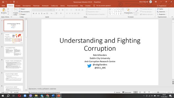 11 травня 2023 р на факультеті історії, бізнес-освіти та права ЦДУ за ініціативи уповноваженої особи з питань запобігання та виявлення корупції в університеті, доцента Олени Окопник відбулась онлайн-зустріч з Антикорупційним дослідницьким центром Школи бізнесу Дублінського міського університету (Anti-corruption research centre, DCU Business School), Ірландія.