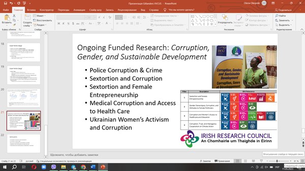 Роберт Гілландерс та Олеся Житкова презентували власні розробки у межах проєкту про боротьбу з корупцією, зв’язки з гендерною політикою та сталим розвитком країни в цілому.