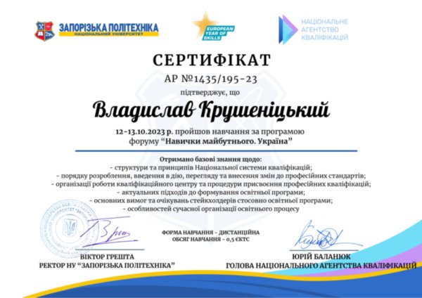 12-13 жовтня 2023 року відбувся форум «Навички майбутнього. Україна» на базі НУ «Запорізька політехніка», за підтримки Національного агентства кваліфікацій під егідою Європейського року навичок.