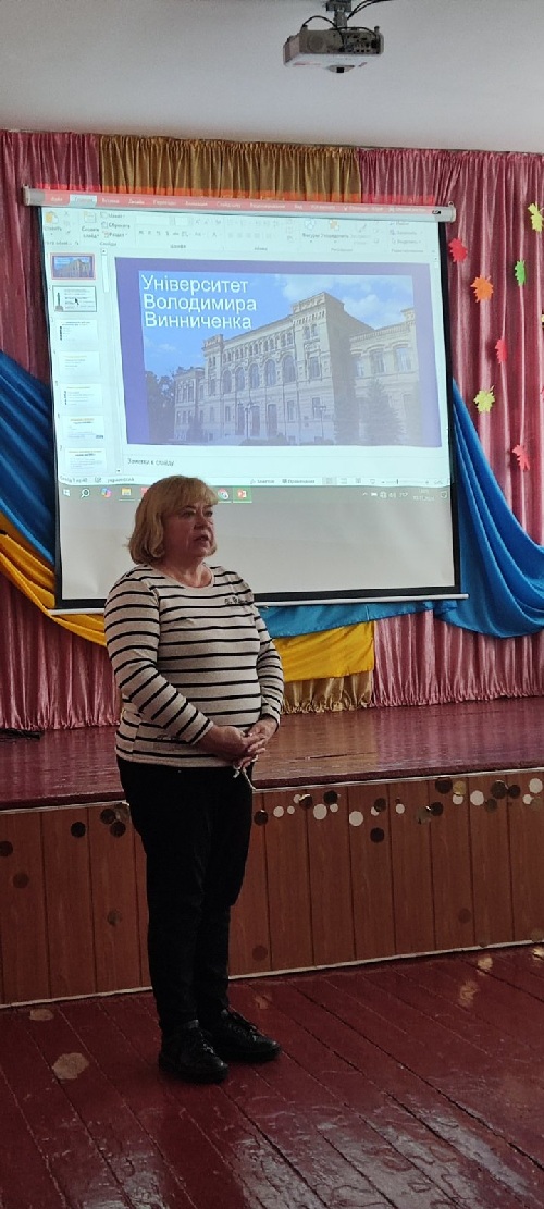 Під час заходу представники кафедри історії України та всесвітньої історії –доцент Л.М. Філоретова та доцент Л.В. Пономаренко зустрілися з учнями 10-11 класів, ознайомили їх зі спеціальностями, за якими здійснюється підготовка фахівців в університеті та факультеті зокрема, ознайомили молодь з особливостями навчання й організації дозвілля в закладі.