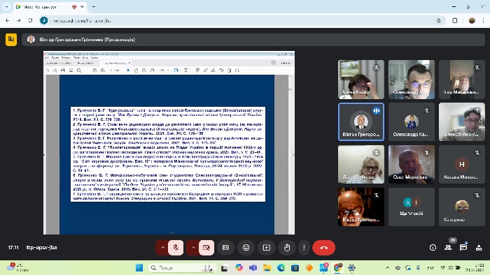 23 грудня на платформі Google Meet відбулося чергове засідання методологічного семінару кафедри історії України та всесвітньої історії. Спікером був кандидат історичних наук, доцент Віктор Григорович Грінченко, який виступив з доповіддю на тему «Газетна періодика України 1920–1940-х рр. як історичне джерело: з практики використання».