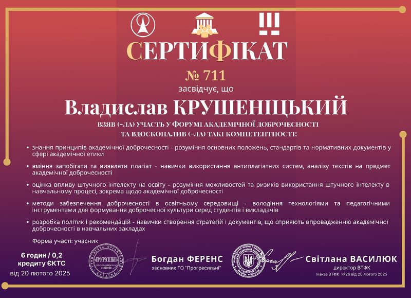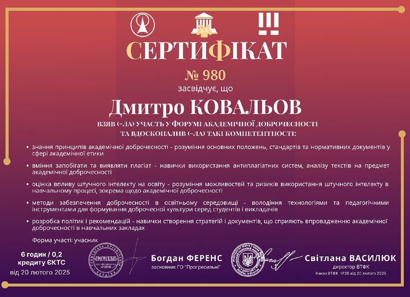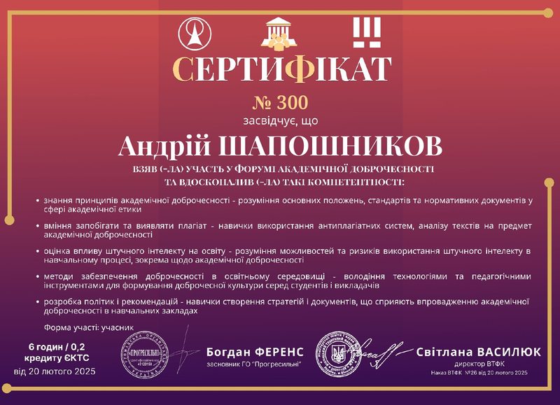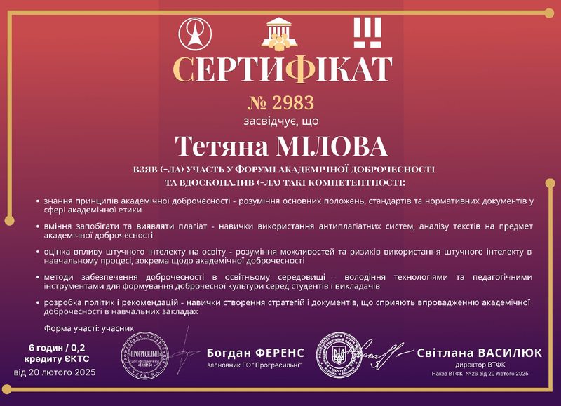 За результатами участь у заході учасники отримали нові знання у питаннях академічної доброчесності, етики в освіті, критичного мислення, інформаційної грамотності та відповідального використання технологій, а також відповідні сертифікати.