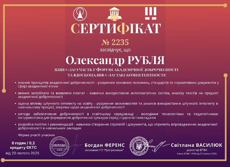 Особлива увага була приділена питанням етики і відповідальності при використанні штучного інтелекту в освітньому процесі, зокрема щодо процесу запобігання плагіату та маніпуляцій в академічних текстах.