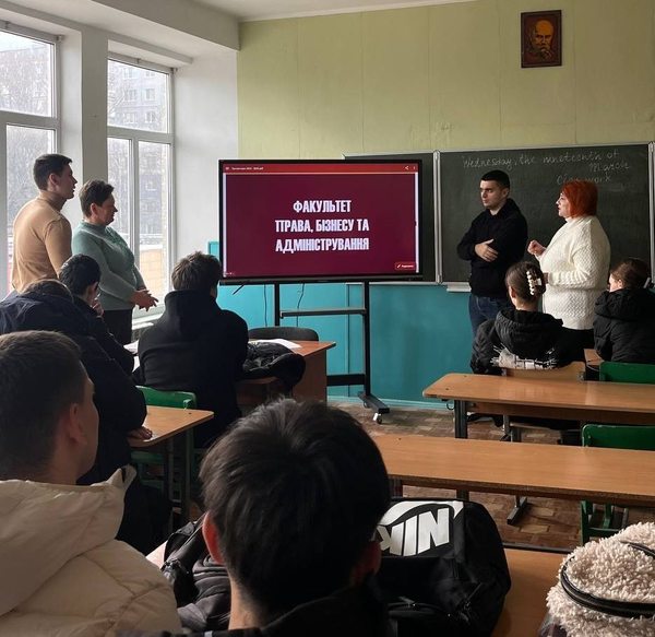 У межах профорієнтаційної роботи кафедри права та правоохоронної діяльності доцент Інна Зеленко та доцент Олена Окопник наголосили на перевагах та перспективах навчання в Університеті, співпраці з роботодавцями, практичній підготовці студентів. Презентуючи факультети та освітні програми університету, особливу увагу викладачі приділили фаховому коледжу «Alma Mater+», який пропонує абітурієнтам практико-орієнтоване навчання.