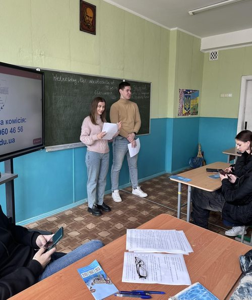У заході взяли участь також представники Юридичної клініки «Artium De Lex» Олександр Кодема та Марія Скрипник. Студенти розповіли учням про особливості функціонування юридичної клініки, а також про активне студентське життя та постійну допомогу ЗСУ, пораненим бійцям і ветеранам війни. Крім того, з учнями правового класу було проведено правопросвітницький захід на тему «Права та свободи неповнолітніх в умовах воєнного стану», який завершився цікавим творчим конкурсом.