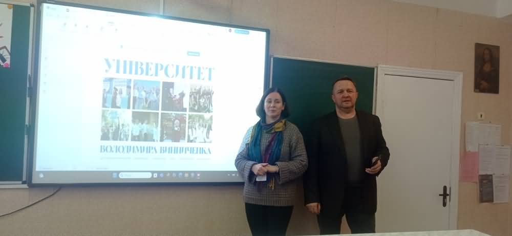 Під час спілкування з учнівською аудиторією доцент кафедри Інна Позднякова ознайомила старшокласників зі структурою та освітніми можливостями ЦДУ ім. В. Винниченка, розповіла про переваги навчання у виші, озвучила перелік спеціальностей і освітніх програм, які пропонує Університет.