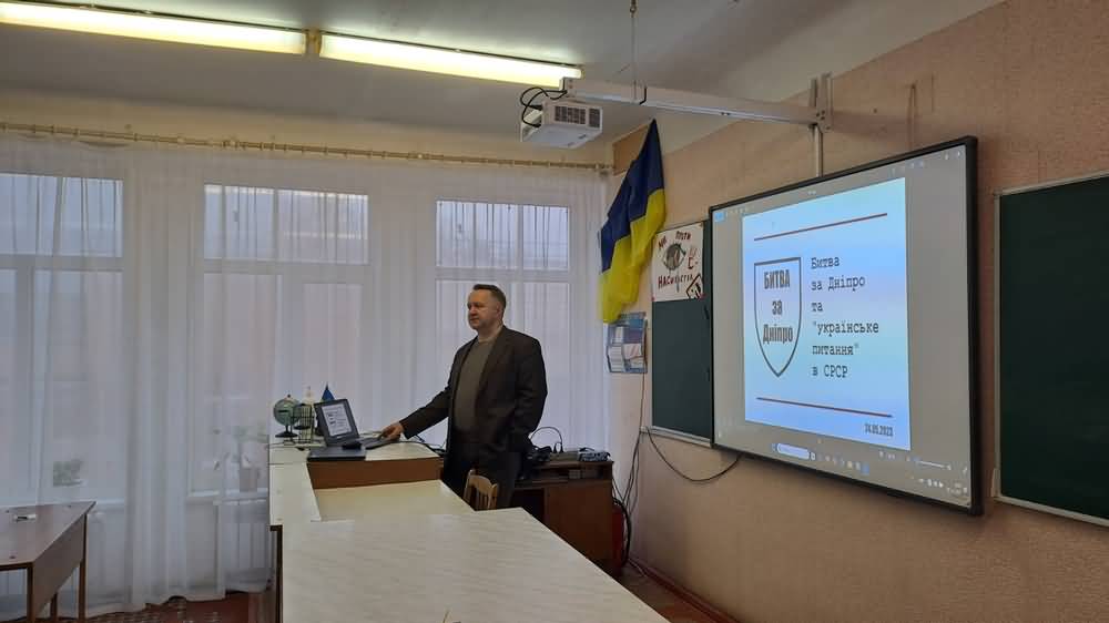 У ході зустрічі з учнями Олександр Чорний наголосив, що штучне звуження часових і просторових рамок битви у радянській історіографії було зумовлене політичними та ідеологічними мотивами, спрямованими на те, аби не визнавати протистояння на Дніпрі наймасштабнішою битвою на Східному фронті.