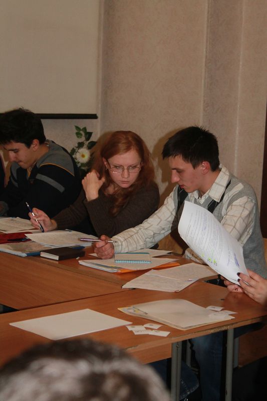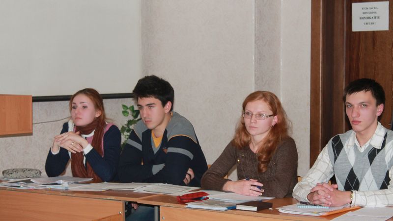В рамках святкування 35-річчя факультету історії та права студентами-магістрами спільно з викладачами кафедр Всесвітньої історії та історії України було проведено турнір істориків. Специфікою цього заходу був той факт, що студенти мали змогу позмагатися із викладачами, адже вони входили до складу протилежних команд. З боку викладачів участь брали: Чорний Олександр Васильович, Ковальков Олександр Леонідович, Панченко Кирило Ігоревич, Скороход Ольга Володимирівна. Команда студентів складалася з: Писаревої Аліни Миколаївни, Колісниченко Ірини Валеріївни, Ігнатьєва Ігоря Олександровича та Яременка Максима Юрійовича. Присутніми в якості глядачів на турнірі були історики-магістри. Результати заходу оцінювало компетентне журі із числа викладачів. Турнір проходив за схемою: виступ – запитання – опонування – рецензування. Питання, винесені на розгляд, знаменувалися неоднозначністю поглядів на них всередині спільноти істориків, гостротою постановки та виключною актуальністю піднятих проблем. Це, в свою чергу, провокувало учасників на гостру дискусію, що зробило турнір жвавим та захоплюючим. Обидві команди показали високий рівень володіння матеріалом, вміння грамотно та коректно полемізувати один з одним. Що ж до того хто переміг, скажемо так, - перевагу здобув багаторічний досвід викладачів. Однак розрив в очках не був надто значним, що говорить про якісну підготовку студентів. Цікаві питання, напружена інтрига, здоровий дух суперництва, глибока демонстрація знань з обох боків зробили цей турнір незабутнім. Як викладачі, так і студенти залишились глибоко задоволені результатами проведеного заходу. В кінці турніру учасники обох команд були нагороджені пам’ятними грамотами та блокнотами.