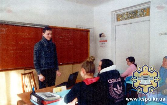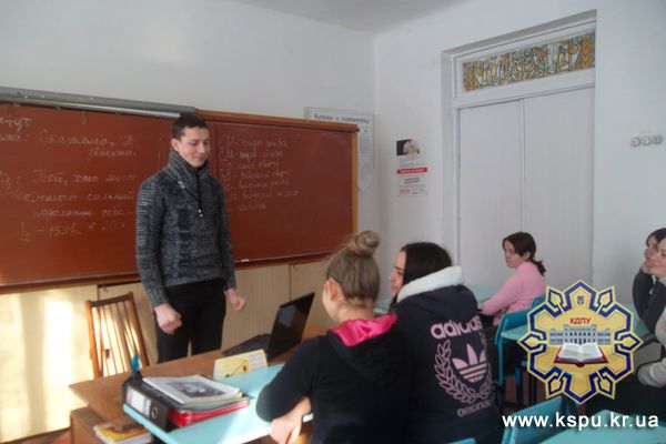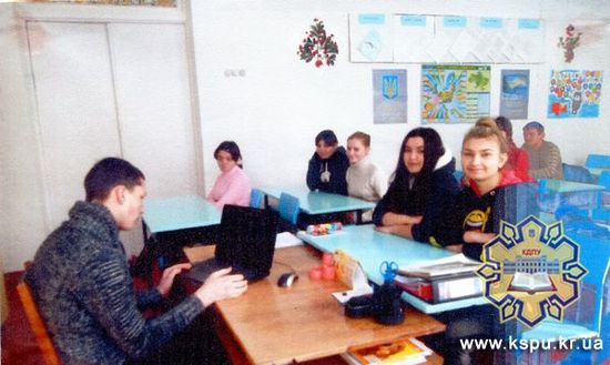 Владислав Перепічай переконує старшокласниць прийти до музею історії Новгородківського району. Січень 2014 р