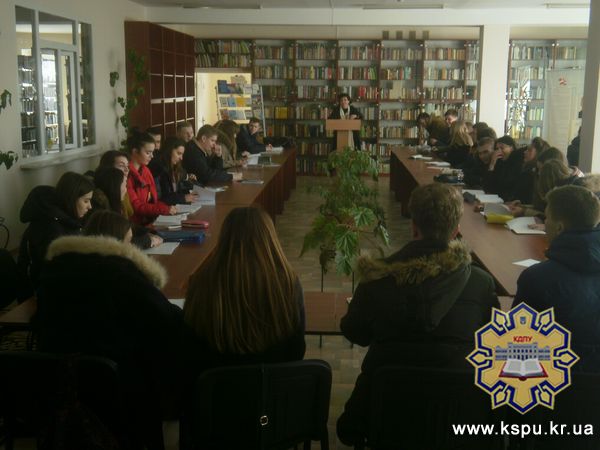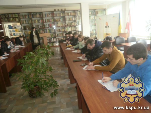 Студенти факультету історії та права мають можливість вивчати курс «Українська мова за професійним спрямуванням» (викладач доцент Т.В.Громко) не тільки в аудиторії. Нещодавно як фрагмент лекції з курсу їм запропоновано було ознайомлення з новинками літератури з ділової української мови в читальному залі університетської бібліотеки. Виставка підготовлена викладачем і бібліотекарями. Майбутні історики, правники та політологи не тільки нотували, розглядали, вдумливо зачитували підручники, посібники, а й висловлювали бажання частіше приходити до читального залу.