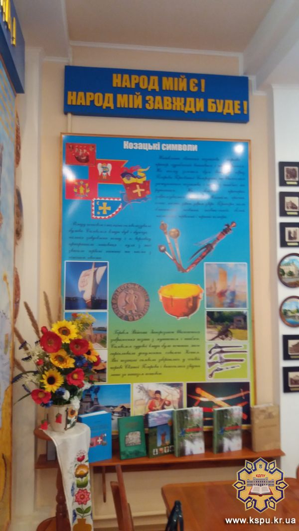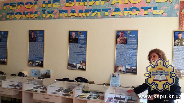 Окремий кабінет обладнаний як музей слави українського народу – козацької слави та слави сучасних захисників територіальної цілісності й незалежності України. Тематична експозиція «Герої не вмирають, поки їх пам’ятають» розповідає про кропивничан, які віддали своє життя, захищаючи нашу країну. Серед них – і випускник 2009 р. нашого вишу – Анатолій Віталійович Бузуляк. На стендах викладено опис життя, трудової діяльності героїв, їх участі в АТО. Представлено особисті речі, документи, які надали музею родичі загиблих.