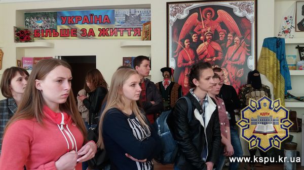 Наших студентів гостинно зустріла та провела цікаву й змістовну екскурсію І. І. Романько – кандидат історичних наук, доцент кафедри професійної педагогіки та соціально-гуманітарних наук КЛА НАУ.