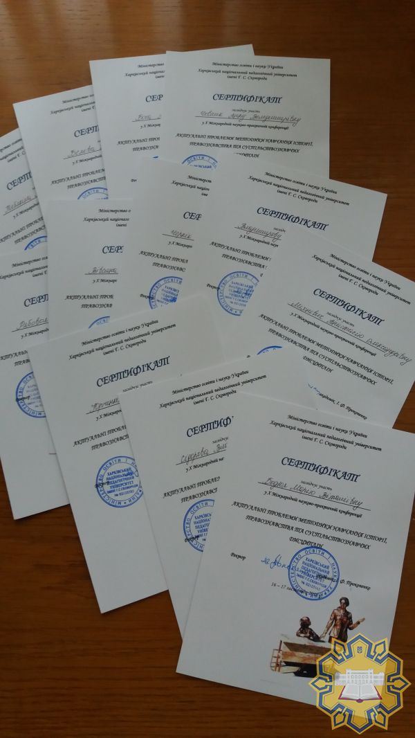У роботі конференції заочно взяли участь і гідно представили наш університет І.А. Вівсяна (к.іст.н., доцент), В.І. Владимирова (к.пед.наук, доцент), С.Д. Чернік (к.іст.н., доцент), а також студенти факультету історії та права – Д.О. Бєлов, М.В. Бодюл, А.В. Боса, А.О. Міхневич, В.В. Сідоров, І.С. Тебякін, А.В. Човник, О.Г. Юрченко.