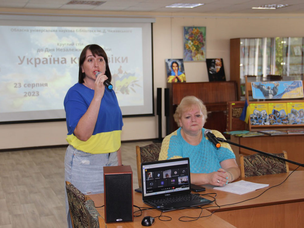У рамках відзначення великих державних свят – Дня Державного прапора та Дня Незалежності України в обласній науковій бібліотеці імені Дмитра Чижевського було організовано круглий стіл «Україна крізь віки». 23 серпня у відділі обслуговування користувачів книгозбірні відбулася цікава зустріч працівників і відвідувачів бібліотеки з істориками-науковцями Центральноукраїнського державного університету імені Володимира Винниченка. Долучитися до розмови змогли також викладачі та студенти-історики онлайн.
