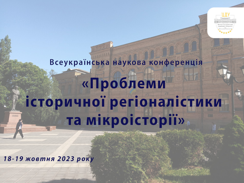 Запрошуємо науковців до участі у Всеукраїнській науковій конференції «Проблеми історичної регіоналістики та мікроісторії» з нагоди 175-ї річниці від дня народження Павла Рябкова та 65-ї річниці від дня народження Сергія Шевченка, яка відбудеться 18-19 жовтня 2023 року на базі Центральноукраїнського державного університету імені Володимира Винниченка.