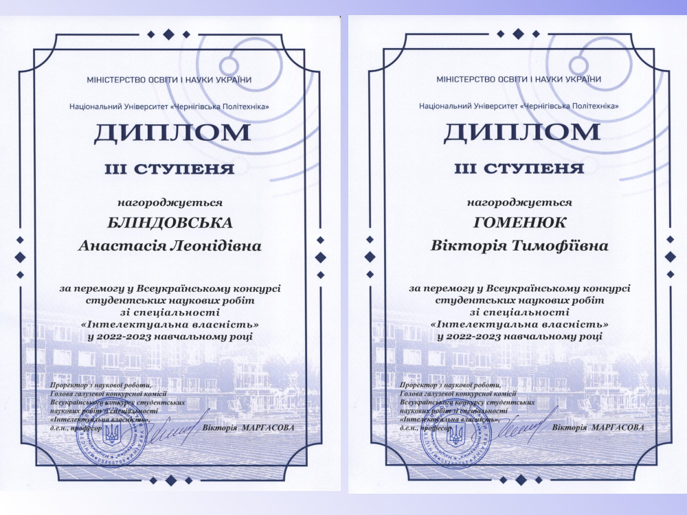 На базі Національного університету «Чернігівська політехніка» галузевою конкурсною комісією визначено результати ІІ туру Всеукраїнського конкурсу студентських наукових робіт зі спеціальності «Інтелектуальна власність».