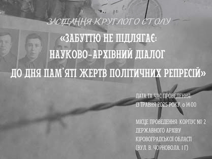 У співпраці із Державним архівом Кіровоградської області та Центральноукраїнським обласним краєзнавчим музеєм здобувачі освіти факультету історії, бізнес-освіти та права 13 травня взяли участь у роботі круглого столу «Забуттю не підлягає: науково-архівний діалог до дня пам’яті жертв політичних репресій».