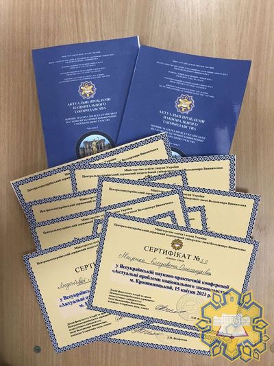 На факультеті історії та права Центральноукраїнського державного педагогічного університету імені Володимира Винниченка 15 квітня 2021 року відбулася Всеукраїнська науково-практична конференція «Актуальні проблеми національного законодавства». Співорганізаторами конференції стали Національний юридичний університет імені Ярослава Мудрого, Кременчуцький національний університет імені Михайла Остроградського, Кіровоградський науково-дослідний експертно-криміналістичний центр МВС України.