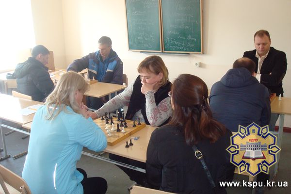 У Спартакіаді «Здоров’я» серед викладачів та співробітників КДПУ імені Володимира Винниченка підійшли інтелектуальні протиборства. Команду викладачів факультету історії та права у змаганні з шахів, що відбулись 15 березня, представляли декан факультету, доцент кафедри історії України Лариса Мартіївна Філоретова (одну партію виграла у викладача кафедри фізичного виховання і оздоровчої фізичної культури Юлії Анатоліївни Ковальової й одну програла у визнаної майстрині з фізико-математичного факультету, доцента кафедри прикладної математики, статистики та економіки Зої Петрівни Халецької), доцент кафедри всесвітньої історії Олександр Леонідович Ковальков (одну партію виграв у викладача кафедри фізичного виховання і оздоровчої фізичної культури Олександра Миколайовича Бур’яноватого та одну програв у працівника інформаційного відділу Андрія Бондаря) та доцент кафедри філософії та політології Руслан Вікторович Стадніченко (одну партію виграв у старшого викладача кафедри прикладної математики, статистики та економіки Олега Петровича Макарчука та одну програв доценту кафедри теорії та методики олімпійського і професійного спорту Андрію Леонідовичу Бабенко). У підсумку наша команда з шахів набрала три залікових очки й посіла друге місце, пропустивши команду фізико-математичного факультету.