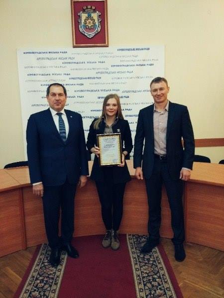 16 листопада, з нагоди Міжнародного дня студента, у міській раді Кропивницького відбулась урочиста зустріч керівництва міста зі студентською молоддю. У зустрічі взяли участь міський голова Андрій Райкович, секретар міської ради Андрій Табалов, начальник відділу сім’ї та молоді Людмила Дорохіна, іменні стипендіати міського голови, студентський актив, голови студентських рад та профспілок. Після вітального слова кращим студентам були вручені сертифікати на стипендії від міської ради. Серед кращих – наша студентака, майбутній політолог – Сапожнікова Яна.