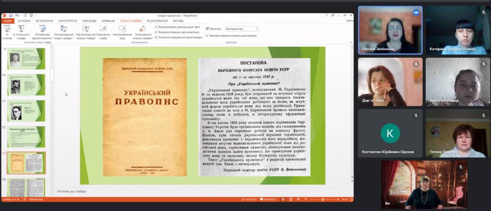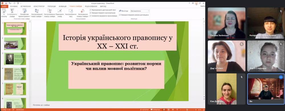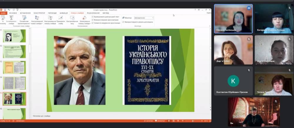 28 березня 2023 року відбулася гостьова лекція докторки філологічних наук, професорки кафедри української мови та методики її навчання Уманського державного педагогічного університету імені Павла Тичини Оксани Юріївни Зелінської на тему: «Історія українського правопису у ХХ–ХХІ ст.» для аспірантів ІІ курсу спеціальності «035 Філологія» та учасників наукового гуртка «Актуальні проблеми лексикології та граматики української мови» факультету української філології, іноземних мов та соціальних комунікацій. У підзаголовок винесене проблемне запитання: «Український правопис: розвиток норми чи вплив мовної політики?».