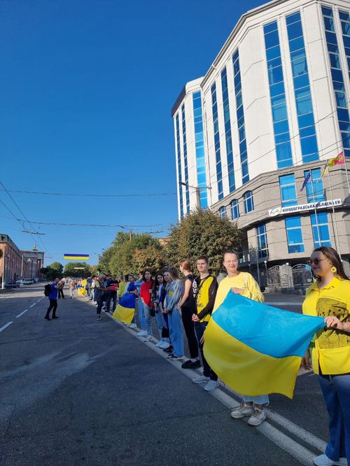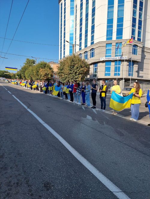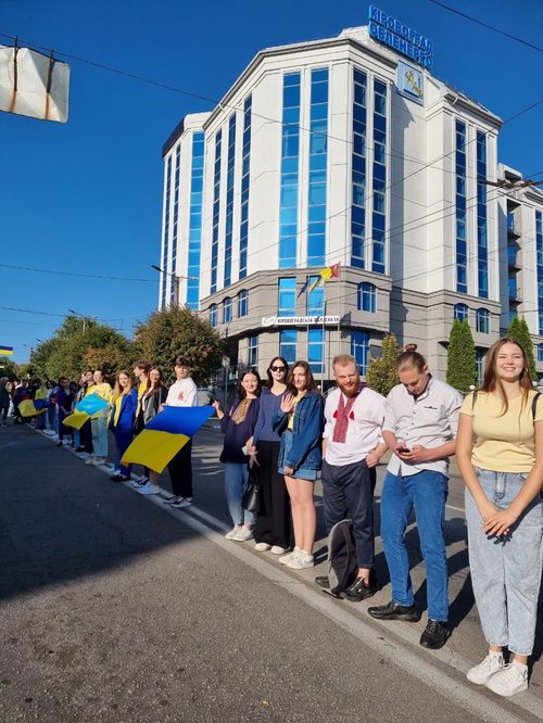 Від знаку «Янгол-охоронець» до Меморіального комплексу «Фортечні Вали» містяни, а серед них і наші студенти та викладачі, утворили «живий ланцюг». У події взяли участь 2200 учасників. Протяжність «ланцюга» – 2,5 км. Вшановуємо пам'ять полеглих за наші життя і свободу. Дякуємо ЗСУ за цей день. Віримо у Перемогу! 💙💛