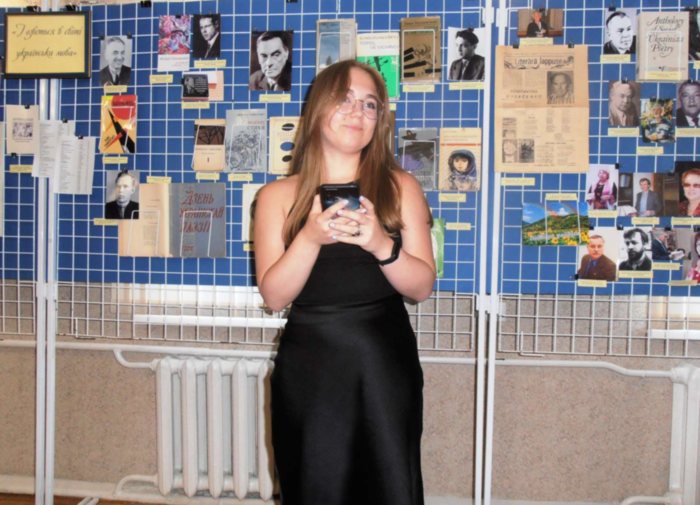 Серед учасників і читців поезії на заході була й студентка ІІІ курсу спеціальності «Прикладна лінгвістика» Анастасія Грищенко, яка декламувала англійський переклад хрестоматійного твору Євгена Маланюка «Земна Мадонна» в перекладі відомого канадського славіста й перекладача Костянтина-Генрі Андрусишена.