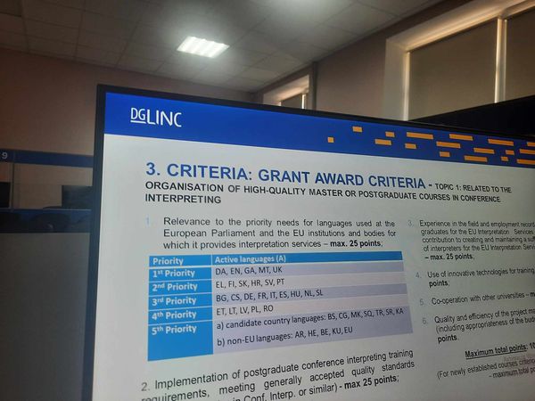 Саме завдяки підтримці Європейського Парламенту кафедра перекладу, прикладної та загальної лінгвістики ЦДУ реалізовує грантовий проєкт із навчання усному перекладу на магістерському рівні «Under-graduate/Post-graduate course of Conference Interpreting» – «Post-graduate course of Translation including Conference Interpreting», договір EP 11/2023-2024 Conference interpreting training EN/DE-UK and UK-EN/DE within the framework of Master’s Degree level of study at CUSU (Ukraine).